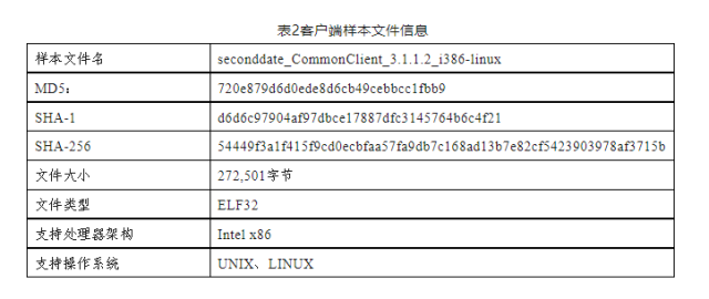 “二次約會(huì)”(SecondDate)間諜軟件支持在Linux、FreeBSD、Solaris、JunOS等各類(lèi)操作系統(tǒng)上運(yùn)行,同時(shí)兼容i386、x86、x64、SPARC等多種體系架構(gòu),適用范圍較廣。
