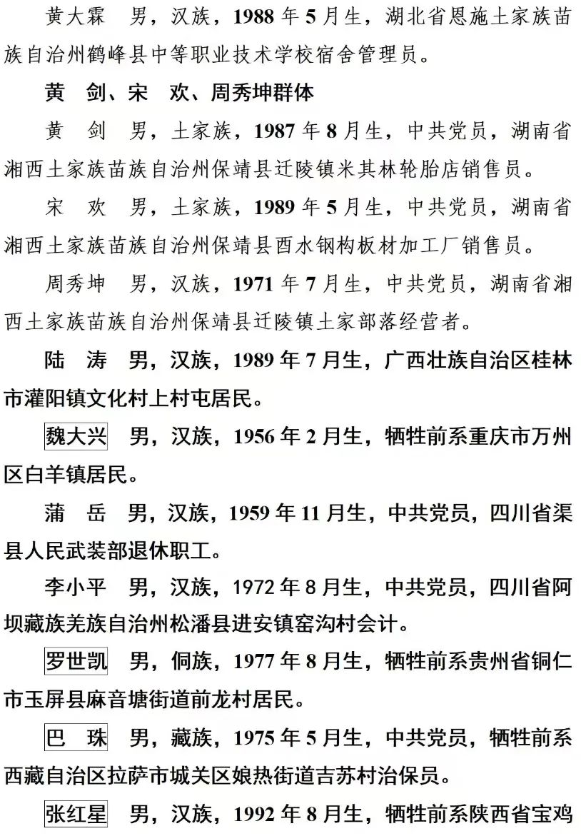 上榜勇士中,有兩度下到沼氣彌漫的污水井救人英勇犧牲的工程師蔡文;有因救火導(dǎo)致二度燒傷的“00后”小伙兒梁博;有身患腿疾仍潛水勇救溺水幼童的七旬老人顧寶賢;有進(jìn)入充滿毒氣的罐體救人不幸犧牲的李滕輝;有協(xié)助警方追捕毒販?zhǔn)苤貍麑?shí)施開顱手術(shù)的崔紅超;有勇救落水群眾獻(xiàn)出寶貴生命的肖坤琦、徐輝、楊傳義、劉學(xué)家、郭字宏、李士存……勇士們?cè)谖<睍r(shí)刻挺身而出、見義勇為,保護(hù)國家利益、集體利益和人民群眾生命財(cái)產(chǎn)安全,他們的事跡可歌可泣,感人肺腑。