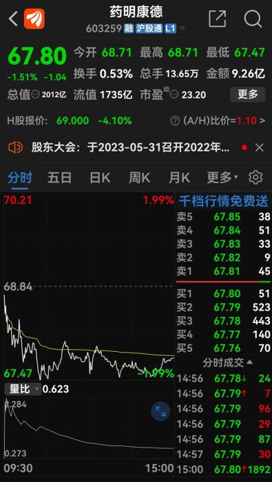 藥明康德17日股價(jià)走勢(shì)