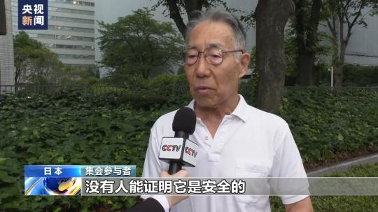 集會參與者:說是“處理水”實(shí)則是污染水,里面含有大量的放射性物質(zhì)。如果真的是安全的話,那請他們用那個水洗澡,去使用它,用它做飯,去喝它,這樣生活五年的話應(yīng)該就清楚了。像這樣,沒有任何人能說它實(shí)際上是安全的,沒有人能證明它是安全的。