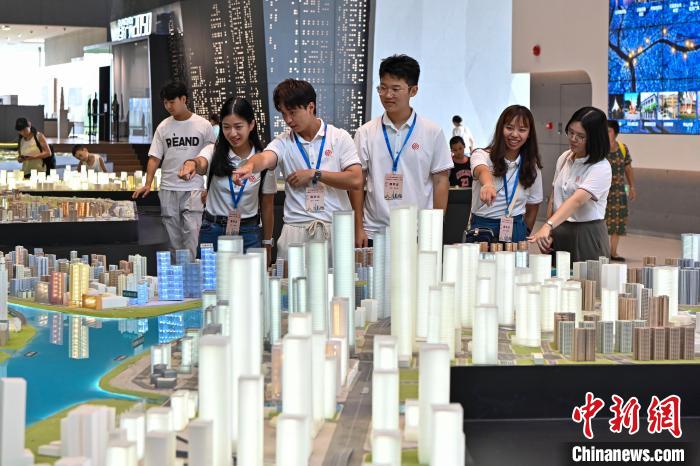 8月8日,2023年全國臺聯(lián)第二十屆臺胞青年千人夏令營廣東分營在廣州開營。圖臺灣青年學生在廣州市城市規(guī)劃展覽中心內(nèi)參觀。中新社記者 陳驥旻 攝
