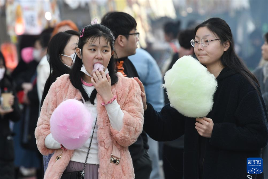 1月5日,在日本名古屋市第18屆“名古屋中國春節(jié)祭”上,游客品嘗棉花糖。新華社記者 岳晨星 攝