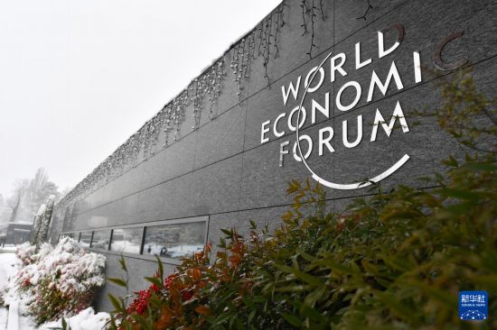 這是1月9日在瑞士日內瓦拍攝的世界經濟論壇標識。新華社記者 連漪 攝
