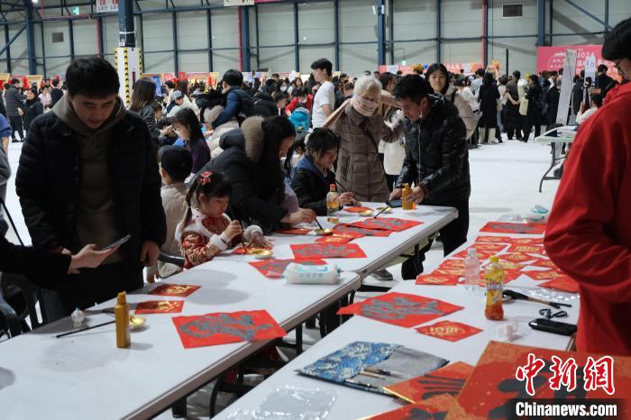 活動現(xiàn)場設置了百余個特色美食和日用百貨攤位,還設有寫福字、猜燈謎、做燈籠、漢服體驗等中國傳統(tǒng)文化體驗區(qū)。