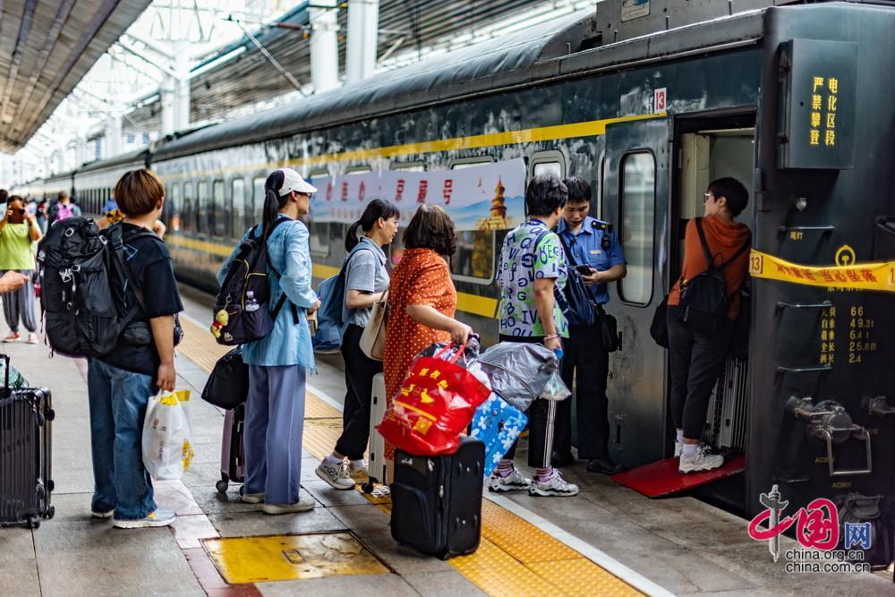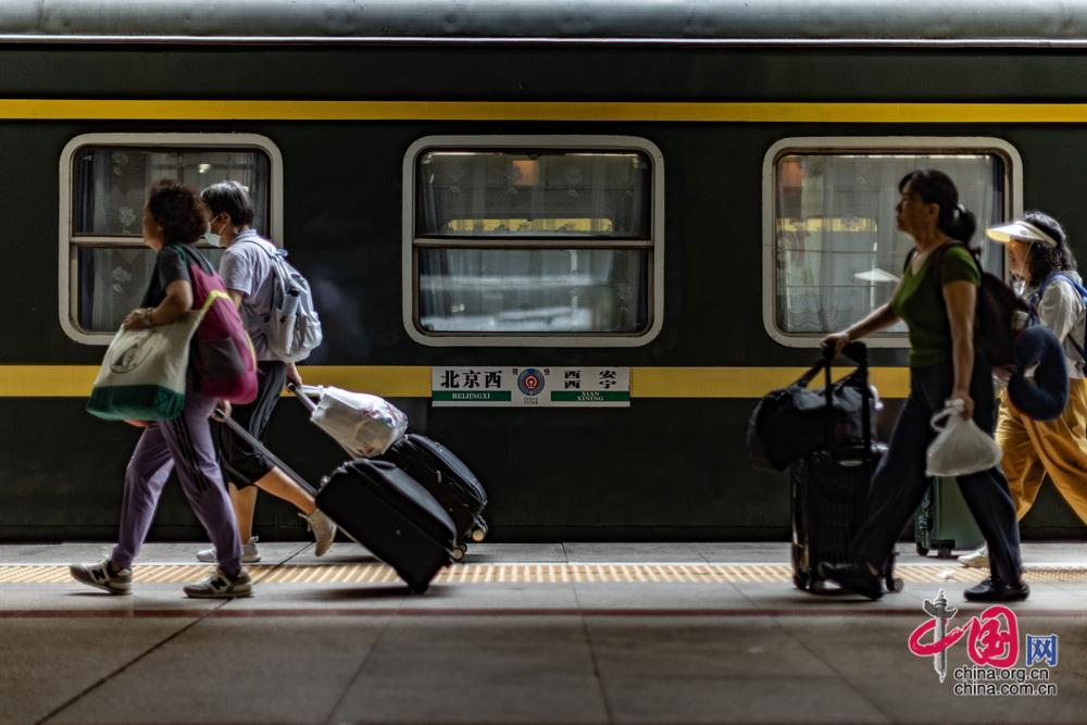 7月1日,“京藏號(hào)”旅游列車從北京西站出發(fā),450名游客開啟為期14天的旅途。中國網(wǎng)記者 鄭亮攝