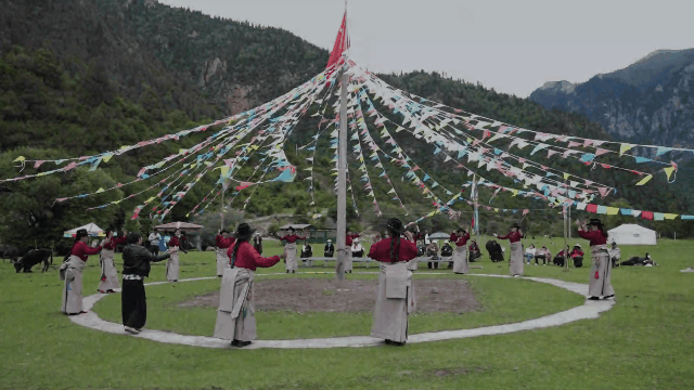 緊鄰國道317川藏北線,一座如同世外桃源般的藏族村寨——西藏昌都市江達縣同普鄉(xiāng)夏榮村,隱藏在草木青翠的崇山峻嶺與層層相疊的梯田間。側(cè)耳傾聽,山谷間傳來一陣陣悠揚的藏族民歌,放眼望去,當?shù)鼐用窈陀慰蛡冋凇盀⑦帧保ㄒ鉃橐环N休閑、娛樂的方式)營地上載歌載舞。青山綠水間,飛舞的袍袖,靚麗的藏式民居,陣陣歡笑聲,構(gòu)成了一幅民族團結(jié)、鄉(xiāng)村振興的對口援藏幫扶暖心圖景。