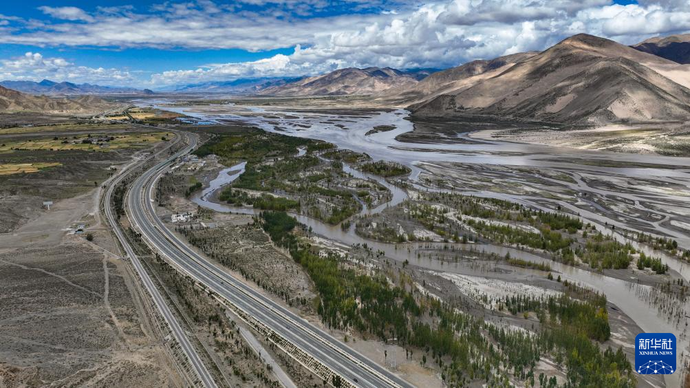 從空中俯瞰西藏拉薩至日喀則高等級(高速)公路南木林段(9月11日攝,無人機照片)。