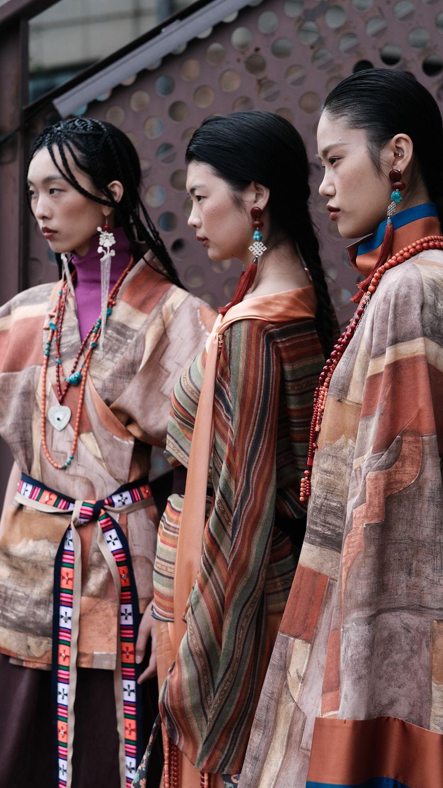 以馬乖在中國國際時(shí)裝周的發(fā)布產(chǎn)品為例,連續(xù)多季深根民族文化的傳承與創(chuàng)新,在跟隨株洲援藏工作隊(duì)進(jìn)入扎囊縣后,馬乖開始深入發(fā)掘藏族服飾與時(shí)尚消費(fèi)的融合創(chuàng)新,跟其他設(shè)計(jì)師借鑒少數(shù)民族元素做新產(chǎn)品的初衷不同,素白所呈現(xiàn)的新款背后是整個(gè)團(tuán)隊(duì)研發(fā)的藏族非遺產(chǎn)品的動(dòng)態(tài)活化過程,氆氌之鄉(xiāng)的“經(jīng)濟(jì)產(chǎn)品”是馬乖展開文化元素呈現(xiàn)后的落點(diǎn),共建面料研發(fā)中心,將手工藝面料再造作為時(shí)尚服飾的亮點(diǎn),研發(fā)新產(chǎn)品,提質(zhì)文化成果的經(jīng)濟(jì)轉(zhuǎn)化。觀察素白發(fā)布的往季產(chǎn)品,不難發(fā)現(xiàn),精粹歷史文化遺產(chǎn)、復(fù)興民族手工藝、打造時(shí)尚融合新品是品牌發(fā)展常態(tài),從大力發(fā)展植物染到玫瑰纖維的研發(fā)和使用,馬乖一直以設(shè)計(jì)之力、品牌影響在為消費(fèi)者尋找更適合中國人自己的時(shí)尚發(fā)展模型。