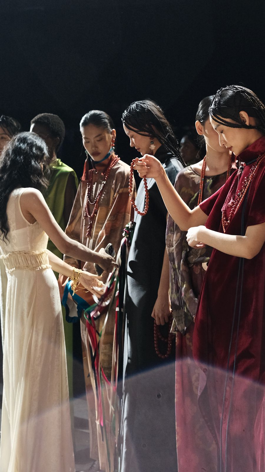 素白在中國國際時(shí)裝周發(fā)布2025春夏新品的當(dāng)天,是品牌創(chuàng)始人馬乖的生日。這場(chǎng)秀像是設(shè)計(jì)師前半途的答卷,在品牌的重要節(jié)點(diǎn)打下了扎實(shí)的“結(jié)”,創(chuàng)立于2020年,第一個(gè)亮相時(shí)裝周的湖南原創(chuàng)品牌,創(chuàng)立之初,品牌的影響力完全來自于互聯(lián)網(wǎng),在湖南株洲的服飾熱土上,有得天獨(dú)厚的市場(chǎng)集群優(yōu)勢(shì),在傳統(tǒng)服飾資源的滋養(yǎng)下,“爆款”道路輕車熟路,但是馬乖沒有急于“收割”,而是耐心走出了另一條路:推動(dòng)民族文化基因的時(shí)尚化再生,讓原創(chuàng)品牌在中國式現(xiàn)代化進(jìn)程中被賦予新的內(nèi)容和發(fā)展路徑。