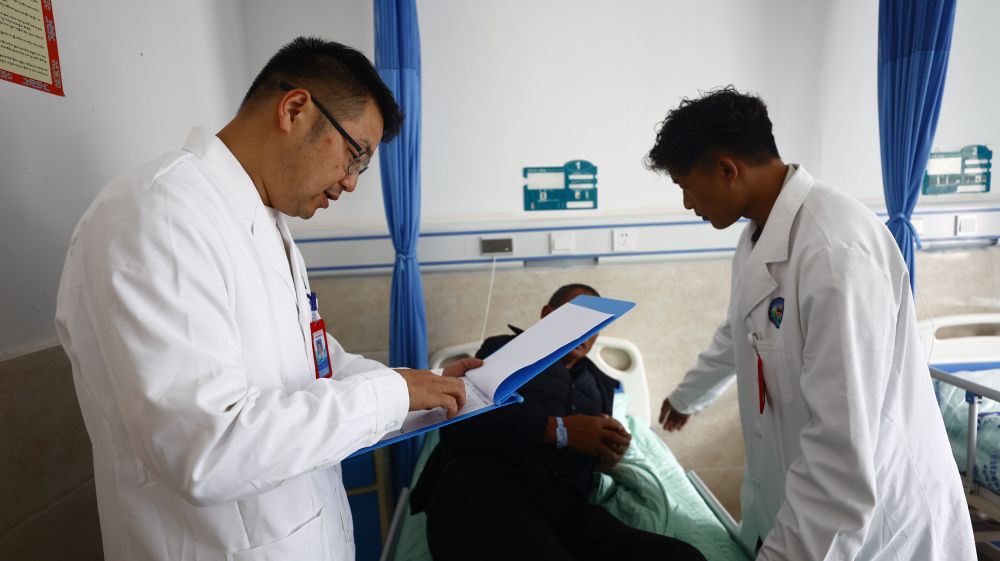 向桂林是一名援藏醫(yī)生,2023年3月,他從重慶市萬州區(qū)來到西藏自治區(qū)昌都市察雅縣開展醫(yī)療援藏工作。在察雅的一年半里,向桂林和隊員們參加了一百多次義診和下鄉(xiāng)指導(dǎo),累計接診門診患者1000余人次、救治住院患者400余人次,開展手術(shù)35臺,申報新技術(shù)10項。今年國慶,向桂林選擇繼續(xù)留守工作崗位?!爸荒茉谝曨l通話里和家人團(tuán)聚了。但這是我們的責(zé)任更是一種榮譽(yù)。”向桂林說。