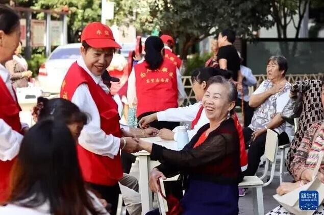 民族團(tuán)結(jié)進(jìn)步創(chuàng)建進(jìn)社區(qū)。這是9月20日,獲評(píng)“全國(guó)民族團(tuán)結(jié)進(jìn)步模范集體”的昆明市盤龍區(qū)聯(lián)盟街道小壩社區(qū)志愿者為居民提供志愿服務(wù)。(莫欣竹 攝)