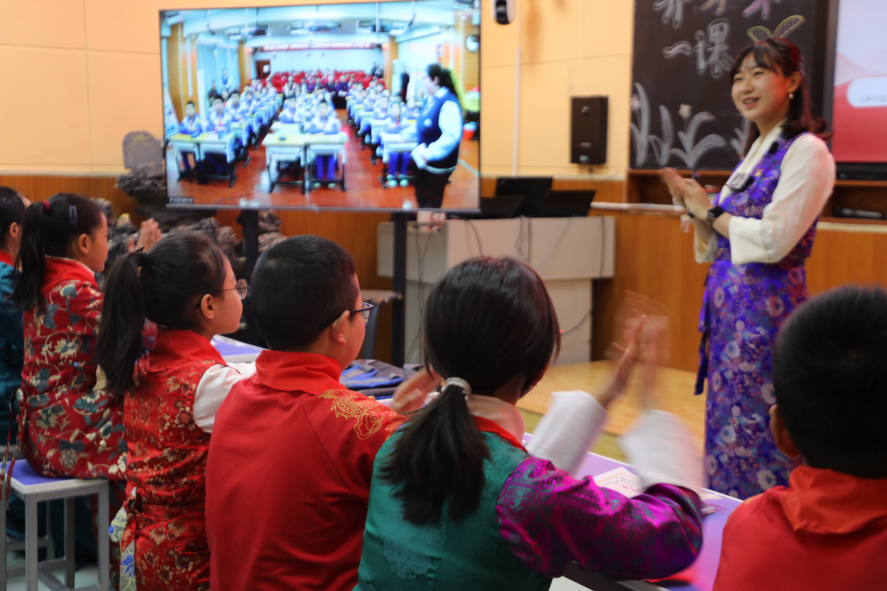 在課堂互動中,西藏的同學紛紛道出自己的心聲,他們渴望前往首都,和北京的同學們面對面交流。拉薩市城關區(qū)海城小學六年(3)班央金巴宗說,“希望這次活動能加深京藏兩地的關系,也希望民族團結的種子在我們的心田生根、發(fā)芽;中華民族一家親,愿我們的國家更加團結友愛!”
