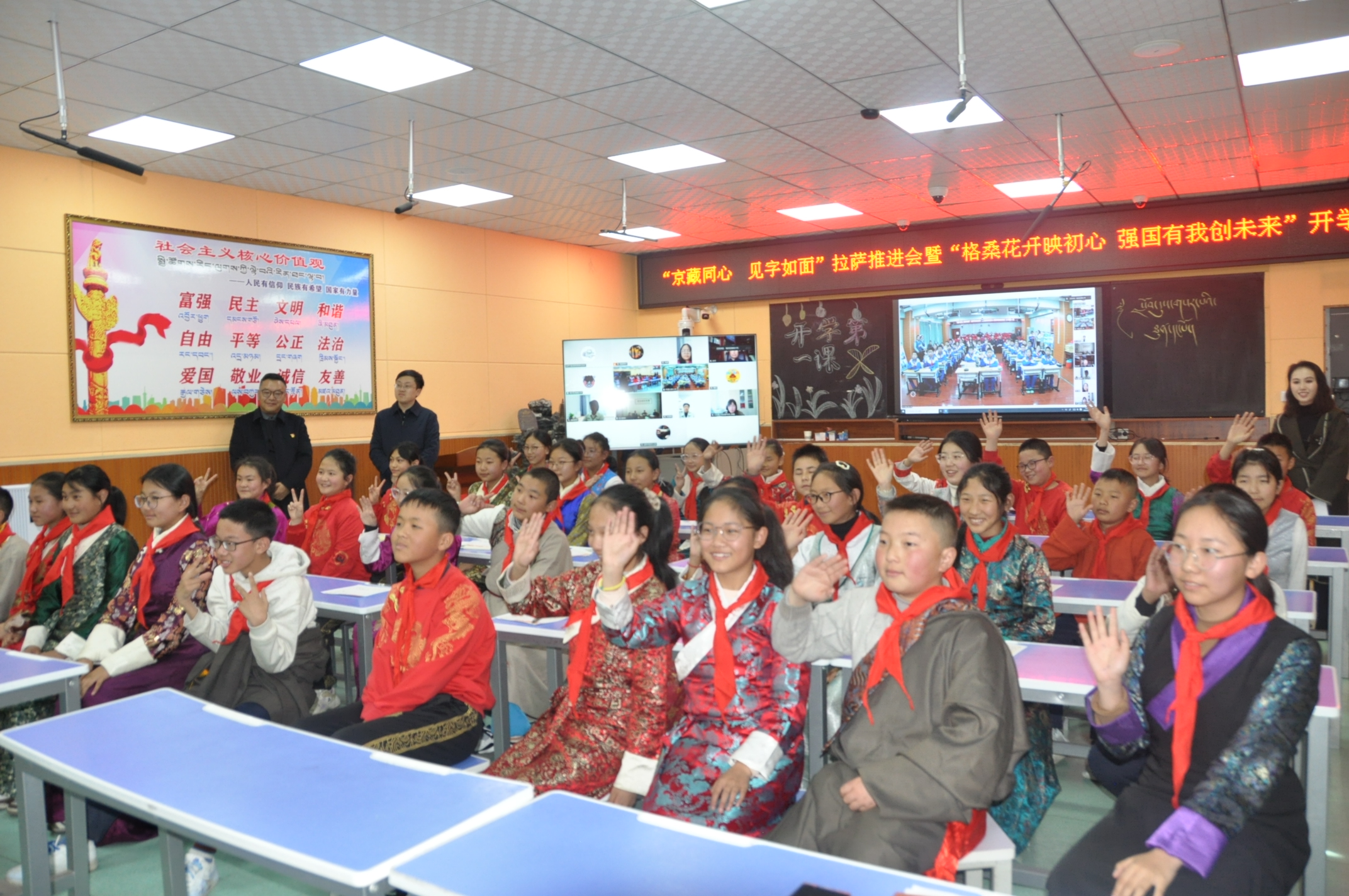 據(jù)悉,本次開學第一課依托“京藏同心 見字如面”拉薩推進會展開,京藏兩地把開學典禮作為一種重要的思想政治教育課程,緊緊圍繞“格?;ㄩ_映初心 強國有我創(chuàng)未來”的主題,深入挖掘在2025年西藏自治區(qū)定日縣抗震救災中涌現(xiàn)的先進事跡。