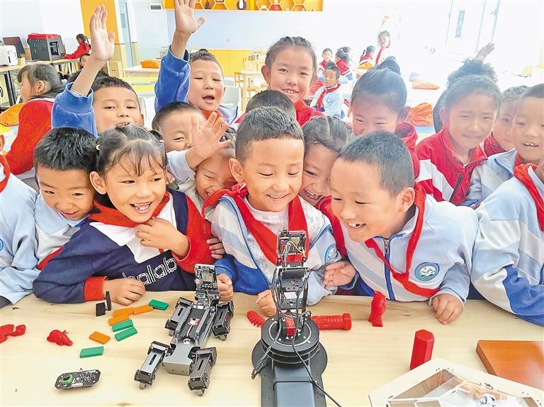 在桑珠孜區(qū)青島小學的科學課堂上,智能實驗臺前圍滿了興致勃勃的孩子,他們手持 3D 打印筆,精心繪制著心中的“太空基地”。作為西藏首個啟動“ STEM ”科學課程的地區(qū),這里不僅建成了全區(qū)首個小學科創(chuàng)實驗室,還被教育部認定為西藏唯一的全國“白名單”科創(chuàng)賽事基層組織單位?!耙郧埃⒆觽冎荒軓恼n本上了解實驗,現(xiàn)在能親手操作機器人、設計航天模型。”青島小學黨支部書記周杰介紹道??苿?chuàng)課程的開展,如同一把鑰匙,打開了孩子們創(chuàng)新思維和科學探索的大門,為高原青少年搭建起展示科學素養(yǎng)與創(chuàng)新能力的舞臺,推動當?shù)亟逃聵I(yè)邁向新高度。