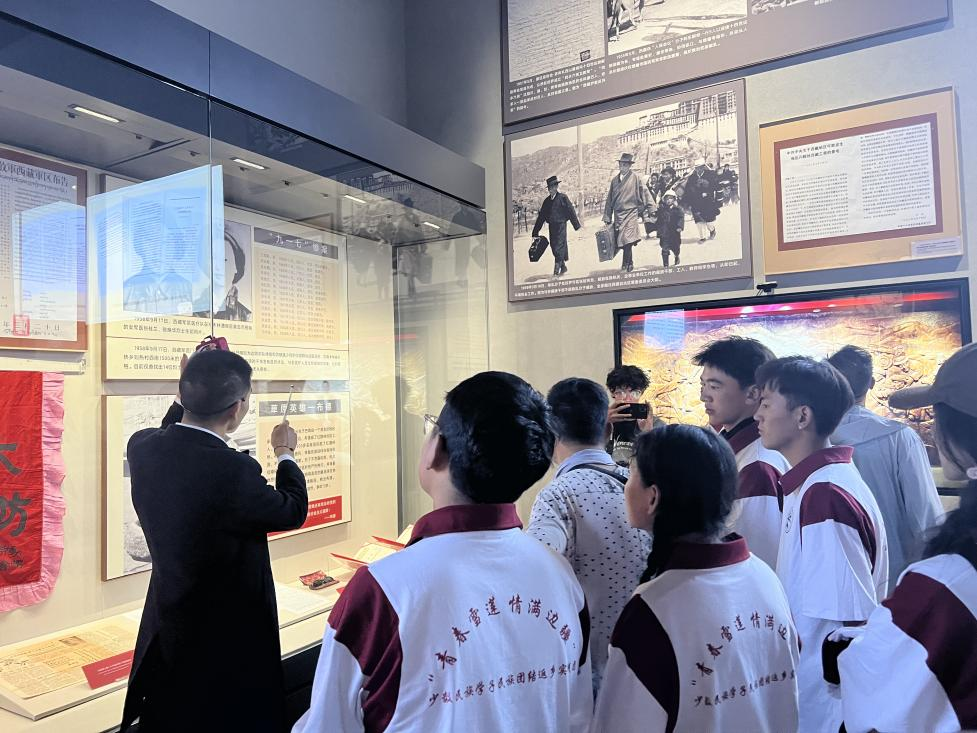 據(jù)悉,利用今年的暑期假日,來(lái)自浙江中醫(yī)藥大學(xué)的十余名西藏籍大學(xué)生,在該校老師的帶領(lǐng)下,組成“民族團(tuán)結(jié)返鄉(xiāng)實(shí)踐團(tuán)”,先后到西藏自治區(qū)博物館參觀了“雪域長(zhǎng)歌—西藏歷史與文化展”“離太陽(yáng)最近的人—西藏民俗文化展”文創(chuàng)體驗(yàn)館等展區(qū),通過(guò)一件件實(shí)物、照片、圖表、影像和實(shí)景還原方式,一同領(lǐng)略了青藏高原獨(dú)有的文化魅力?;顒?dòng)期間,實(shí)踐團(tuán)成員還驅(qū)車來(lái)到拉薩市林周縣參觀了林周農(nóng)場(chǎng)的紅色革命遺址,一同觀看民族團(tuán)結(jié)紀(jì)錄片《高原大寨花》和《擁抱春天》。