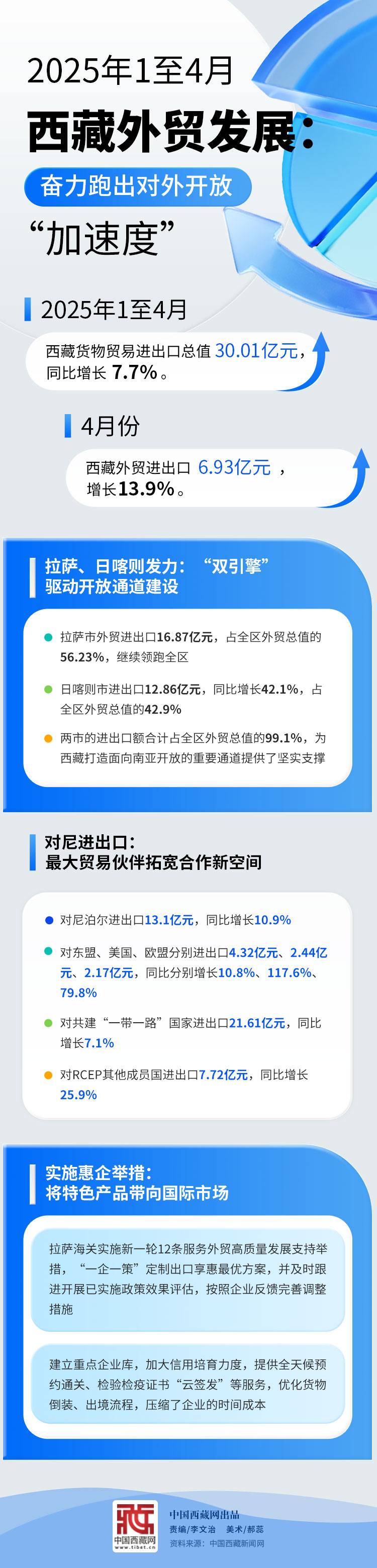 圖解|?2025年1至4月西藏外貿(mào)發(fā)展:奮力跑出對(duì)外開(kāi)放“加速度”