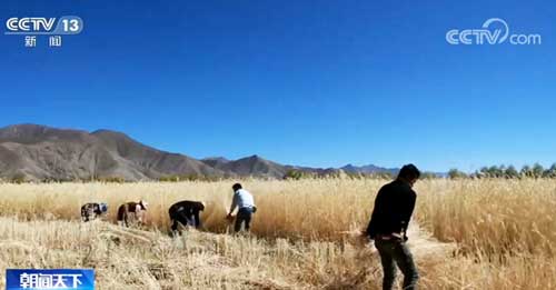 在雅魯藏布江北岸的南木林縣艾瑪鄉(xiāng),當(dāng)?shù)?00萬平方米的綠麥草迎來了豐收,這些天,大伙正忙著收割。