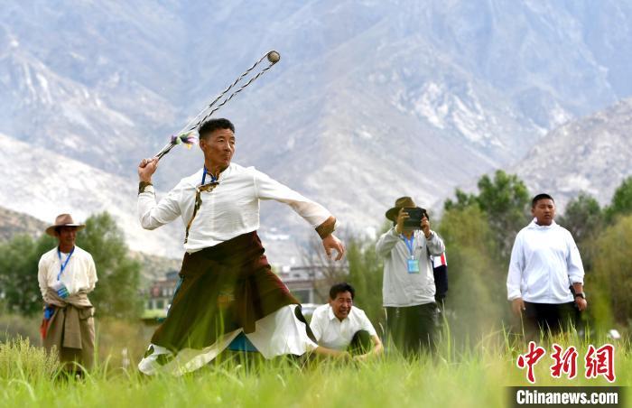當(dāng)斜挎在身的放牧工具變身運(yùn)動(dòng)會(huì)上的比賽項(xiàng)目,參賽選手和觀眾都覺(jué)得難度提高了不少?!捌綍r(shí)放牧,用古朵甩石頭只是一個(gè)大概的方向,能憑借聲音指揮牲畜或者嚇退野獸就行。比賽可不是這樣,得擊中60米外的目標(biāo)。”盡管難度不小,來(lái)自西藏拉薩市林周縣唐古鄉(xiāng)的多吉赤多依舊很高興能參加這樣的比賽。