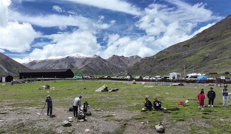 “眼前的景色如此浩瀚,無論我們?nèi)绾闻?,都無法將其完全收入眼底;手中的相機(jī)快門不停地按下,卻總感覺無法捕捉到每一處細(xì)節(jié)的美麗;社交媒體上的照片和視頻,雖然已經(jīng)分享了無數(shù),但總覺得還有更多美好未能展現(xiàn)。言語在這一刻顯得如此蒼白無力,無法完全傳達(dá)我們面對(duì)美景時(shí)的激動(dòng)心情。”這是河南游客張曉明和劉芳夫婦對(duì)薩普雪山的贊美。置身于這絕美的畫卷中,一聲聲驚嘆,是他們對(duì)大自然鬼斧神工的贊美,也是他們內(nèi)心震撼的真實(shí)寫照。