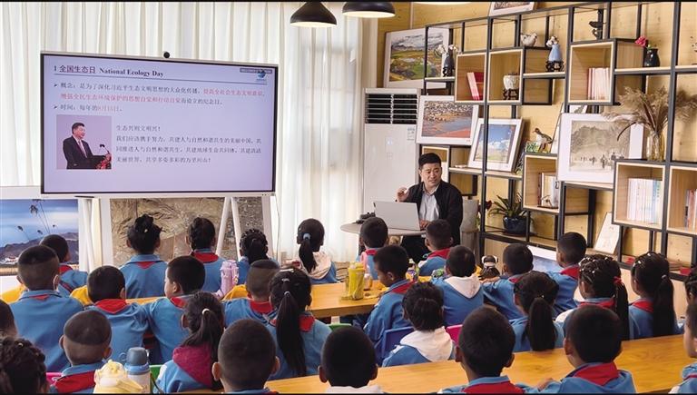 中國科學院地理科學與資源研究所為小朋友科普“全國生態(tài)日”。記者 王靜 攝