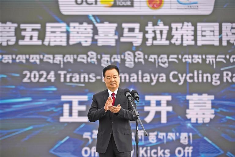 21日上午,2024中國(guó)西藏第五屆跨喜馬拉雅國(guó)際公路自行車(chē)極限賽在拉薩市布達(dá)拉宮廣場(chǎng)隆重開(kāi)幕。自治區(qū)黨委書(shū)記王君正出席開(kāi)幕式并宣布本屆比賽開(kāi)幕。