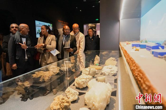 圖為代表團一行在青海省自然資源博物館內了解青海省礦物資源。中新社記者 馬銘言 攝