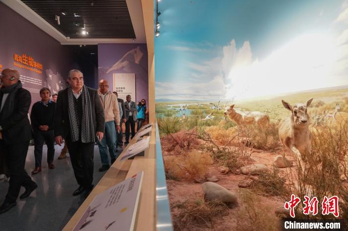 圖為代表團一行在青海省自然資源博物館內通過標本了解高原野生動物。中新社記者 馬銘言 攝
