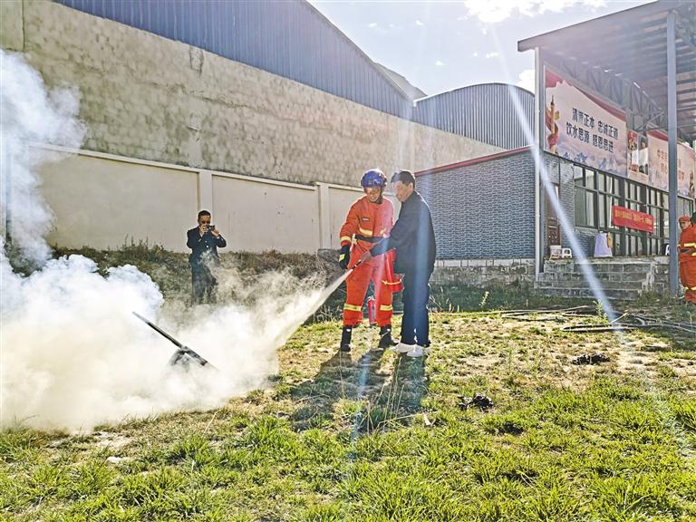 西藏森林消防總隊聯(lián)合拉薩市應(yīng)急管理局為達孜區(qū)群眾和干部職工講解逃生自救方法,進行救援技能展示,并組織滅火模擬演練。通過互動交流、觀摩體驗,充分調(diào)動當(dāng)?shù)厝罕妳⑴c應(yīng)急、共護安全的熱情,使其在沉浸式體驗中提高面對突發(fā)情況的應(yīng)急避險意識和快速反應(yīng)能力,筑牢思想和行動上的“防火墻”。
