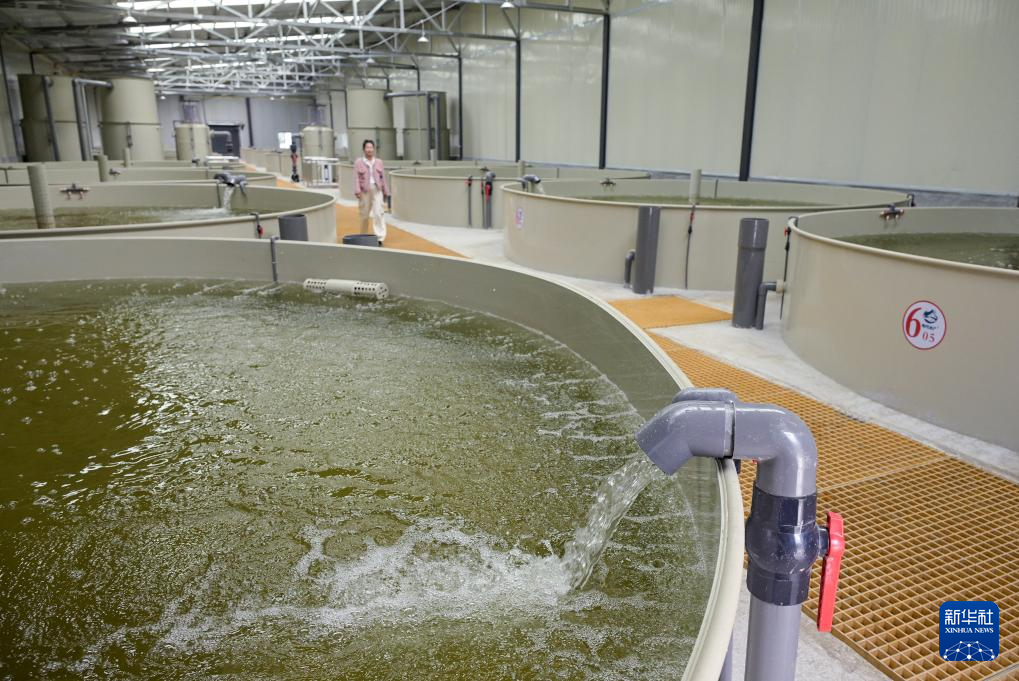 這是在西藏林芝市米林農場的粵林高原漁業(yè)科技園育苗廠房內拍攝的育苗水池(10月24日攝)。新華社記者 李賀 攝