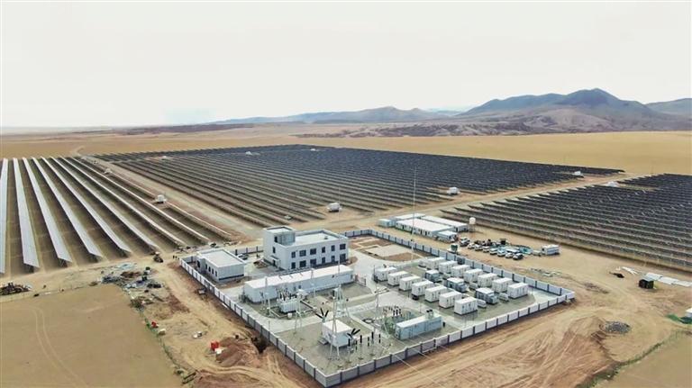 在此期間,項目團隊克服了4700米高海拔、長期高寒環(huán)境、大風施工、遠距離運輸?shù)戎T多惡劣自然條件和建設(shè)困難,積極協(xié)調(diào)優(yōu)質(zhì)資源,確保項目光伏組件的排產(chǎn)、供貨工作,有力保障了現(xiàn)場安裝需求。為提升電站的發(fā)電效率,工程創(chuàng)新采用構(gòu)網(wǎng)型儲能系統(tǒng)和695Wp雙面N型光伏組件,可自主調(diào)整電壓和頻率。這使得電站能夠在電網(wǎng)故障或弱網(wǎng)情況下快速響應并維持局部電網(wǎng)的穩(wěn)定運行,讓新能源具有傳統(tǒng)發(fā)電機一樣“穩(wěn)”的特性。同時,還能適應不同的電網(wǎng)環(huán)境和應用場景,有著強大的適應性和靈活性。