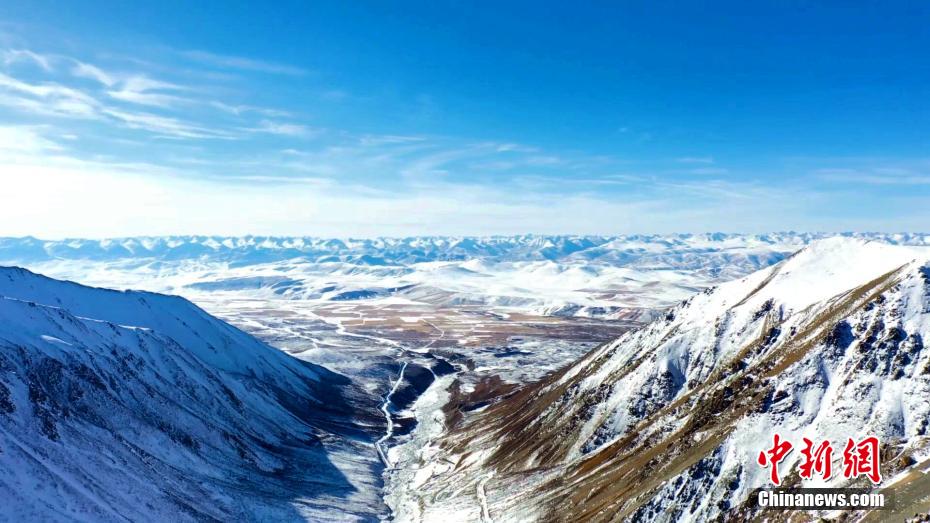 時值初冬,青藏高原已是一幅深冬景象。位于祁連山腹地的青海省海北藏族自治州門源縣境內(nèi),大地被大雪覆蓋,干凈如初,浩門河蜿蜒著穿境而過。祁連山脈東段最高峰崗什卡雪峰和七彩瀑布宛若大自然雕琢的藝術品,在陽光的照耀下閃爍著光芒。圖為祁連山腹地被冬日暖陽照射。