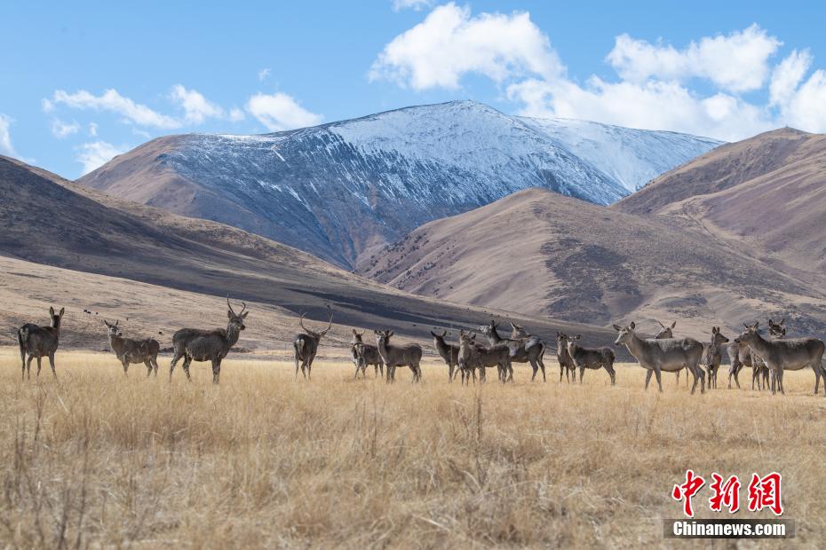 11月19日,西藏自治區(qū)昌都市類烏齊縣長毛嶺鄉(xiāng)協(xié)塘村馬鹿國家級自然保護(hù)區(qū)的草原上,西藏馬鹿在覓食、嬉戲。據(jù)悉,西藏馬鹿是馬鹿的一個(gè)亞種,屬國家二級重點(diǎn)保護(hù)動(dòng)物。20世紀(jì)90年代初,國際瀕危動(dòng)物會議認(rèn)為西藏馬鹿已經(jīng)“絕種”,而西藏野生動(dòng)物保護(hù)工作者在類烏齊縣考察時(shí)確定西藏馬鹿仍然存在,并于1993年設(shè)立類烏齊馬鹿自然保護(hù)區(qū),2005年升級為類烏齊馬鹿國家級自然保護(hù)區(qū)。圖為西藏馬鹿在類烏齊馬鹿國家級自然保護(hù)區(qū)內(nèi)覓食。