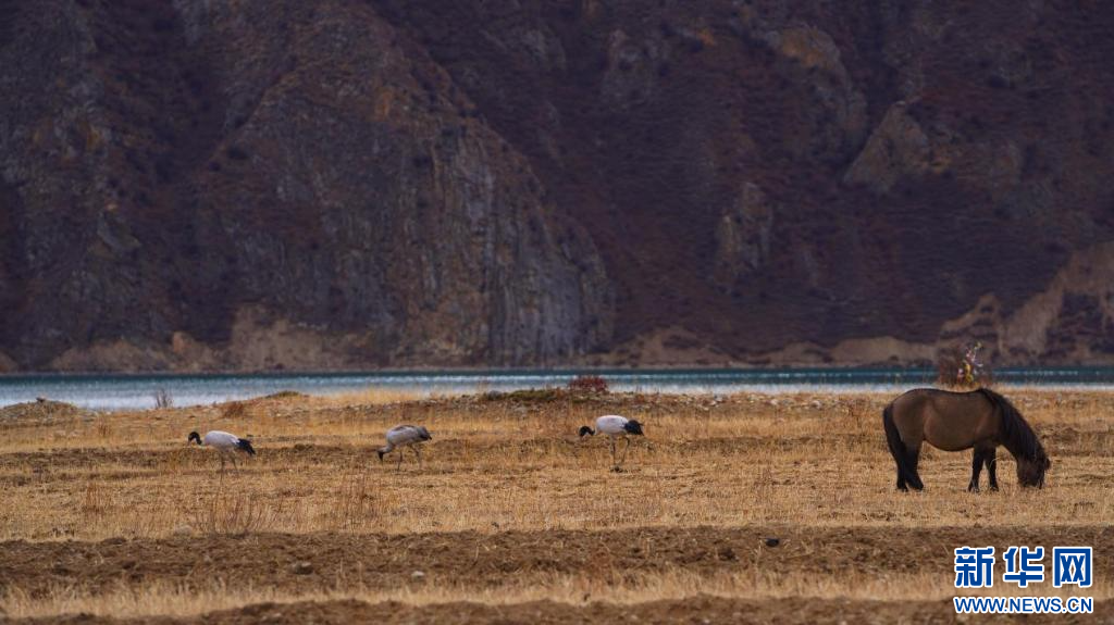 初冬的清晨,拉薩市墨竹工卡縣扎雪鄉(xiāng)迎來了大批越冬的“老朋友 ”-- 黑頸鶴。它們時而低頭覓食,時而閑庭信步,時而揮翅舒展,遠(yuǎn)遠(yuǎn)望去與成群結(jié)隊的牛馬和遠(yuǎn)處的雪山、湖泊交相輝映,形成了一幅人與自然和諧共生的美好畫卷。