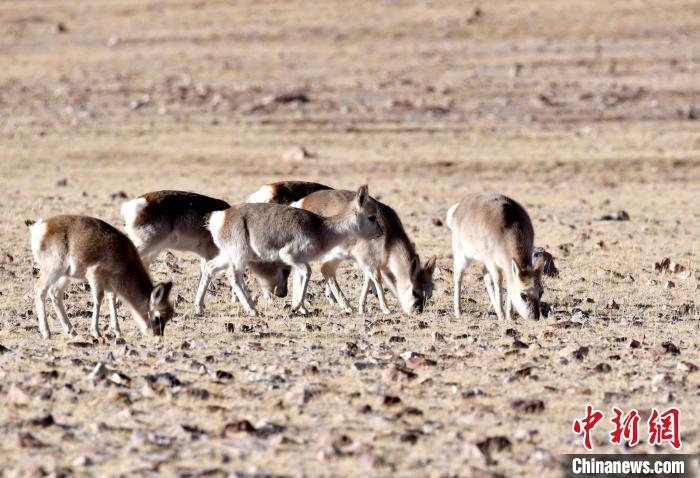 圖為12月5日,西藏那曲市申扎縣境內(nèi)的中國(guó)國(guó)家二級(jí)保護(hù)動(dòng)物藏原羚正在覓食。中新社記者 李林 攝