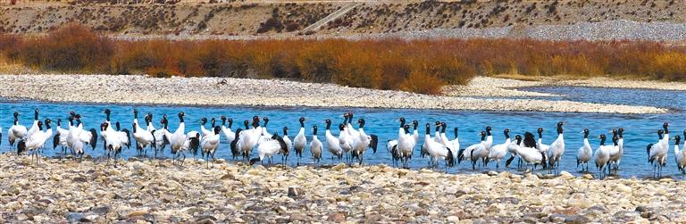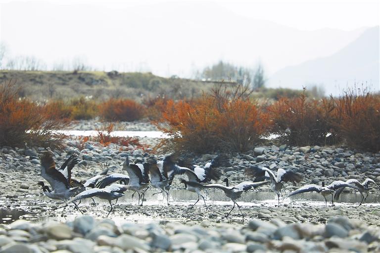如今,一批又一批黑頸鶴從四川、青海等地啟程,歷經(jīng)近千公里的長(zhǎng)途跋涉,紛紛抵達(dá)西藏各越冬地,開啟他們的越冬生活。