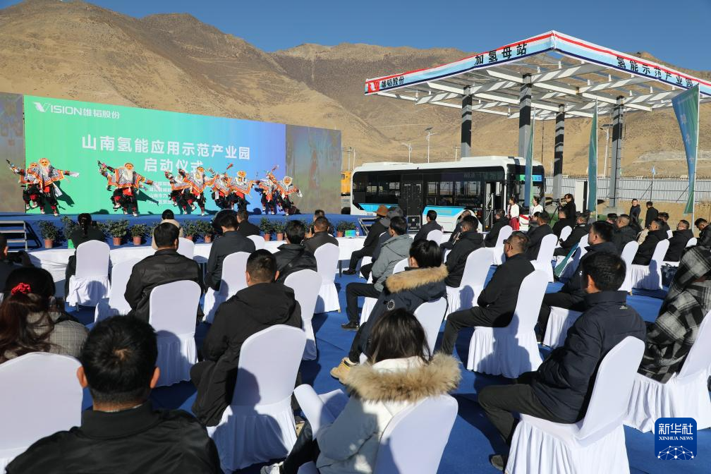山南市氫能應(yīng)用示范產(chǎn)業(yè)園啟動(dòng)儀式現(xiàn)場(chǎng)。 新華社發(fā) 李亞杰 攝