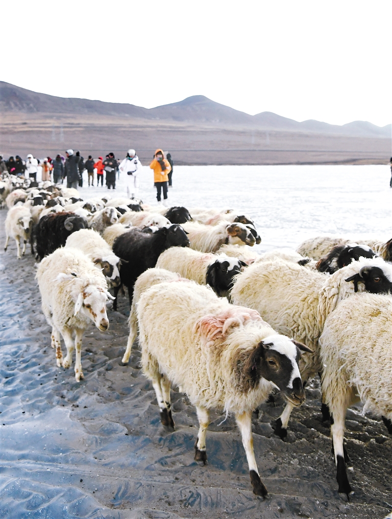 隨著時(shí)代的變遷,普莫雍錯(cuò)的趕羊活動(dòng)逐漸走進(jìn)大眾視野,成為獨(dú)特的文化景觀。2024年起,浪卡子縣開(kāi)始舉行普莫雍錯(cuò)“藍(lán)冰之約”系列活動(dòng),吸引了全國(guó)乃至世界各地的游客及攝影愛(ài)好者前來(lái)打卡拍攝。時(shí)至今日,趕羊不僅是一種古老的傳統(tǒng)習(xí)俗,更是一扇窗,可以讓人們窺見(jiàn)雪域高原的神秘與壯麗,也激發(fā)了人們對(duì)自然環(huán)境的保護(hù)意識(shí)。