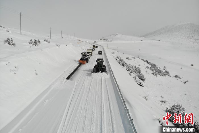 抵達(dá)現(xiàn)場(chǎng)后,武警官兵立即展開(kāi)任務(wù)情報(bào)偵搜和群眾救助工作,向滯留人員送上熱水和預(yù)防“高反”的藥品,幫助受困車(chē)輛脫困,并聯(lián)系公安交警部門(mén)對(duì)道路實(shí)施交通管制。因受災(zāi)路段多處于高山之巔,海拔較高、氣候惡劣,且現(xiàn)場(chǎng)降雪持續(xù)不斷,加大了除雪保通任務(wù)難度,為快速恢復(fù)道路通行質(zhì)量,指揮員結(jié)合現(xiàn)場(chǎng)情況,合理劃分人機(jī)編組,果斷采用“多機(jī)協(xié)同、單向推進(jìn)、先推后撒”的戰(zhàn)法展開(kāi)作業(yè)。