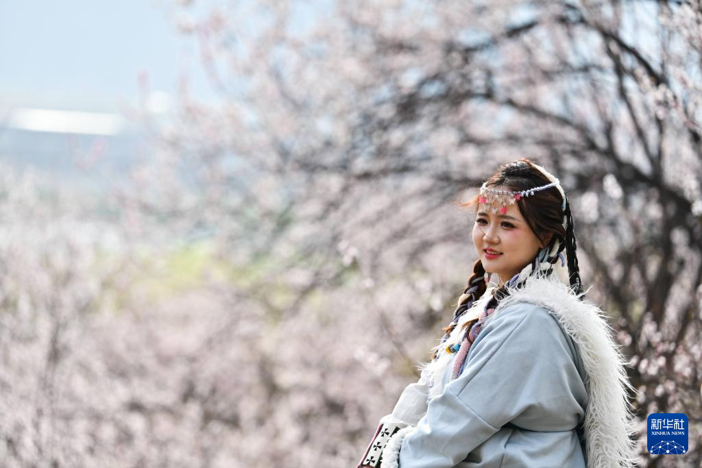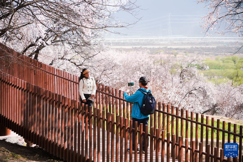 3月29日,游客在林芝市巴宜區(qū)嘎拉村賞花拍照。新華社記者 齊芷玥 攝
