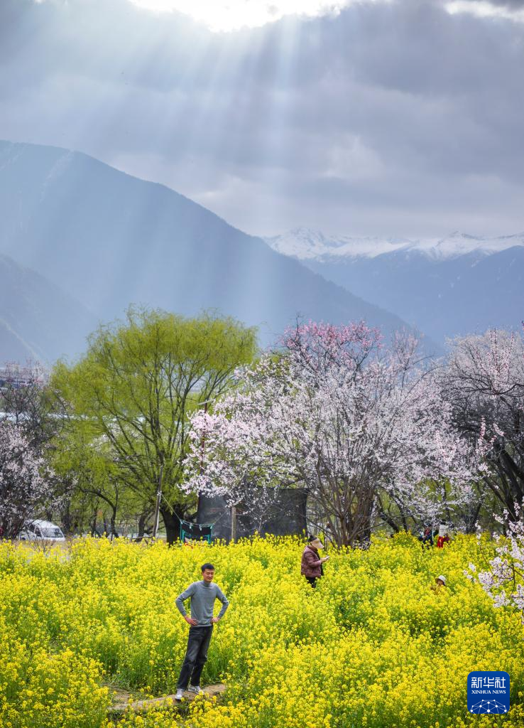 3月29日,游客在林芝市巴宜區(qū)嘎拉村賞花游玩。新華社記者 齊芷玥 攝