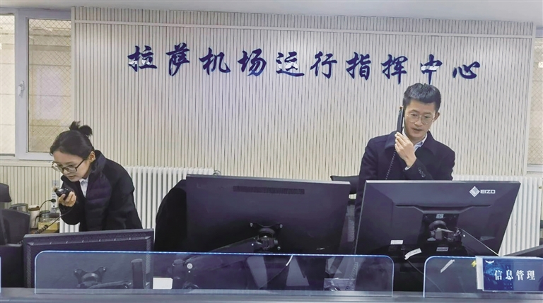 拉薩貢嘎國際機場運行指揮中心緊急調度機位,保障旅客轉機。圖片由 張偉 提供