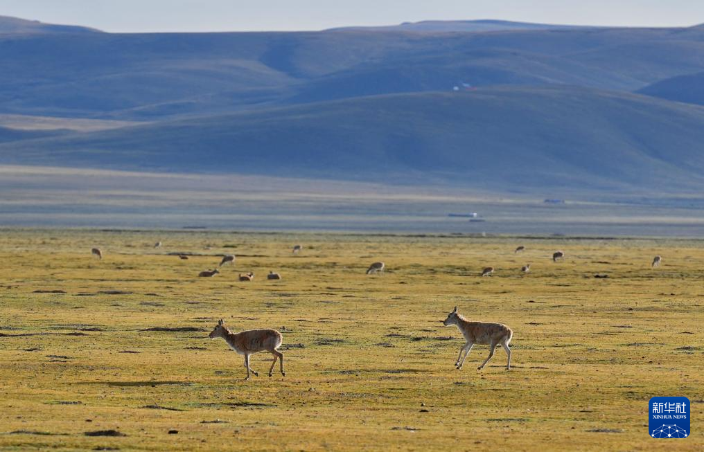 色林錯(cuò)國家級自然保護(hù)區(qū)那曲市申扎縣片區(qū)里的藏羚羊(2024年8月26日攝)。新華社記者 張汝鋒 攝