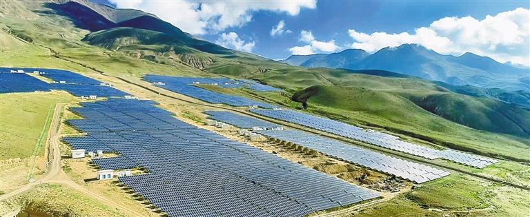 在措美縣城東、西兩側(cè)的山坡上,一排排光伏發(fā)電板在陽光的照射下熠熠生輝。措美縣全年日照強(qiáng)、降水少,年均日照時(shí)數(shù)超2800小時(shí),擁有豐富的太陽能資源。近年來,措美縣大力發(fā)展光伏發(fā)電產(chǎn)業(yè),實(shí)現(xiàn)綠色低碳發(fā)展,讓高原變身“綠電藍(lán)?!薄=刂聊壳?,措美縣共建設(shè)有光伏電站3座,總裝機(jī)容量達(dá)到70MW。自2017年第一座光伏電站并網(wǎng)發(fā)電至2024年底,累計(jì)發(fā)電量超3.4億千瓦時(shí),相當(dāng)于節(jié)約標(biāo)準(zhǔn)煤約4.2萬噸,減少二氧化碳排放約33.9萬噸。