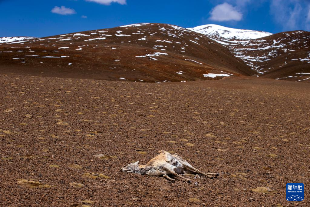 一頭雌性藏羚羊在羌塘國(guó)家級(jí)自然保護(hù)區(qū)核心區(qū)繁殖遷徙的路上死于狼口(6月8日攝)。新華社記者 姜帆 攝