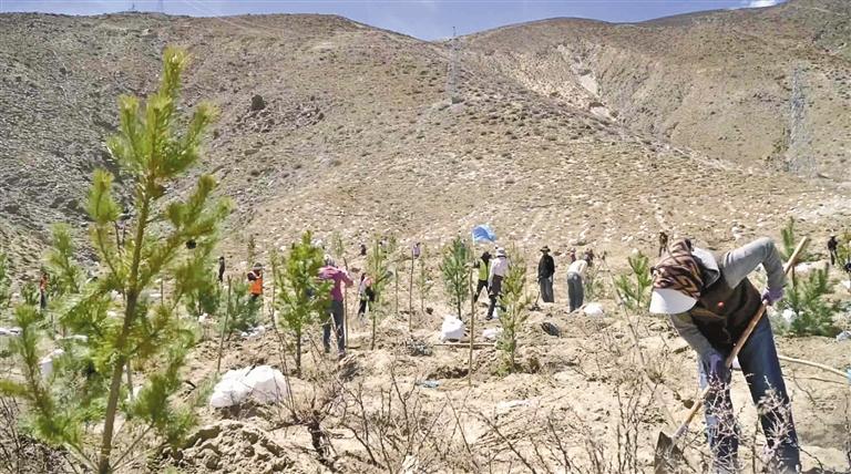 圖為六月八日,南北山綠化工程桑日段植樹現(xiàn)場(chǎng)。 通訊員 阿旺金巴 攝