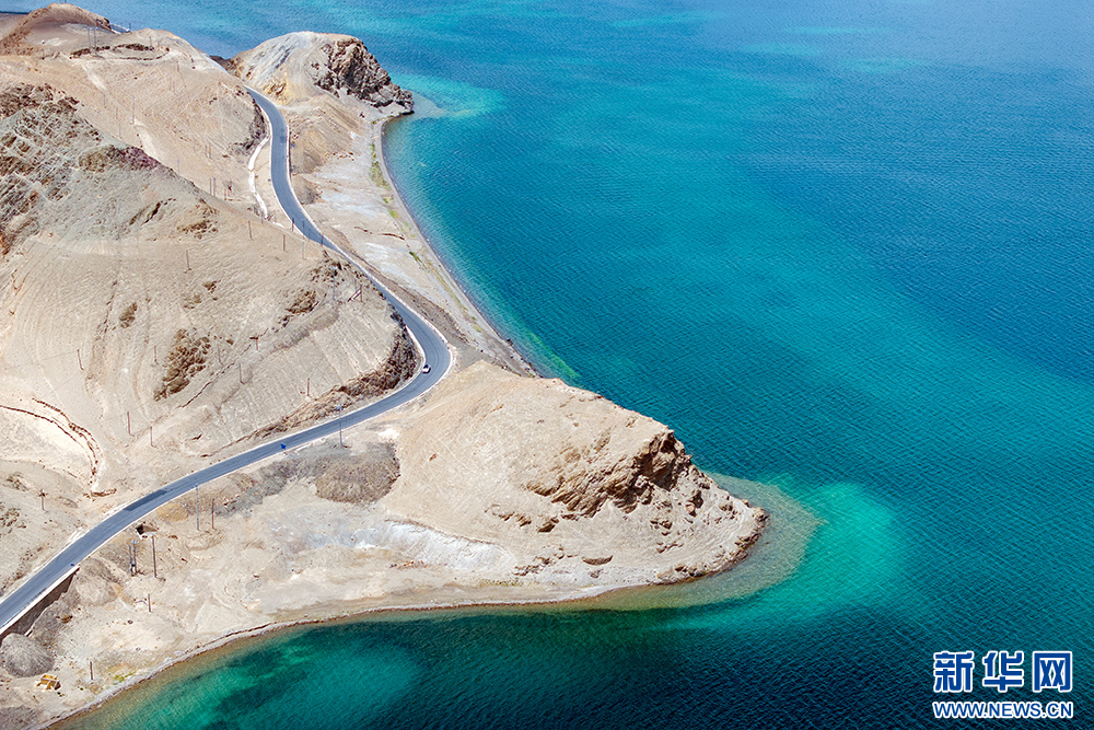 鳥瞰班公湖(6月15日攝,無人機(jī)照片)。新華網(wǎng) 旦增努布 攝