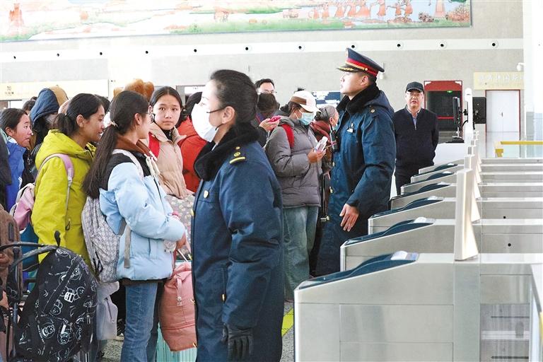 近日,為更好地服務(wù)學(xué)生寒假返鄉(xiāng),山南火車站積極與當(dāng)?shù)馗鲗W(xué)校聯(lián)系接洽,及時(shí)掌握返鄉(xiāng)學(xué)生的具體人數(shù)及客票、乘車需求等信息,并增設(shè)了學(xué)生票辦理專窗,安排專人引導(dǎo)。同時(shí),山南火車站還組織人員在安檢口、檢票口、電扶梯、站臺(tái)等關(guān)鍵區(qū)域加強(qiáng)引導(dǎo)幫扶,特別開(kāi)辟了學(xué)生安檢專用通道,幫助學(xué)生快速驗(yàn)證進(jìn)站,減少等待時(shí)間。