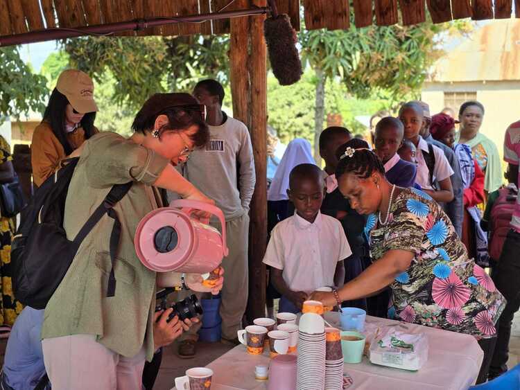 唐麗霞:我們發(fā)現(xiàn)在兩個村子里面,有兩個農(nóng)戶開始做豆?jié){來銷售,開個小豆?jié){店,不僅賣豆?jié){,還賣午餐和豆制品,大家就非常高興。今年我們駐坦桑尼亞大使陳明健也去看過這些店,提出“ China drink”這個概念在當?shù)睾苁軞g迎。