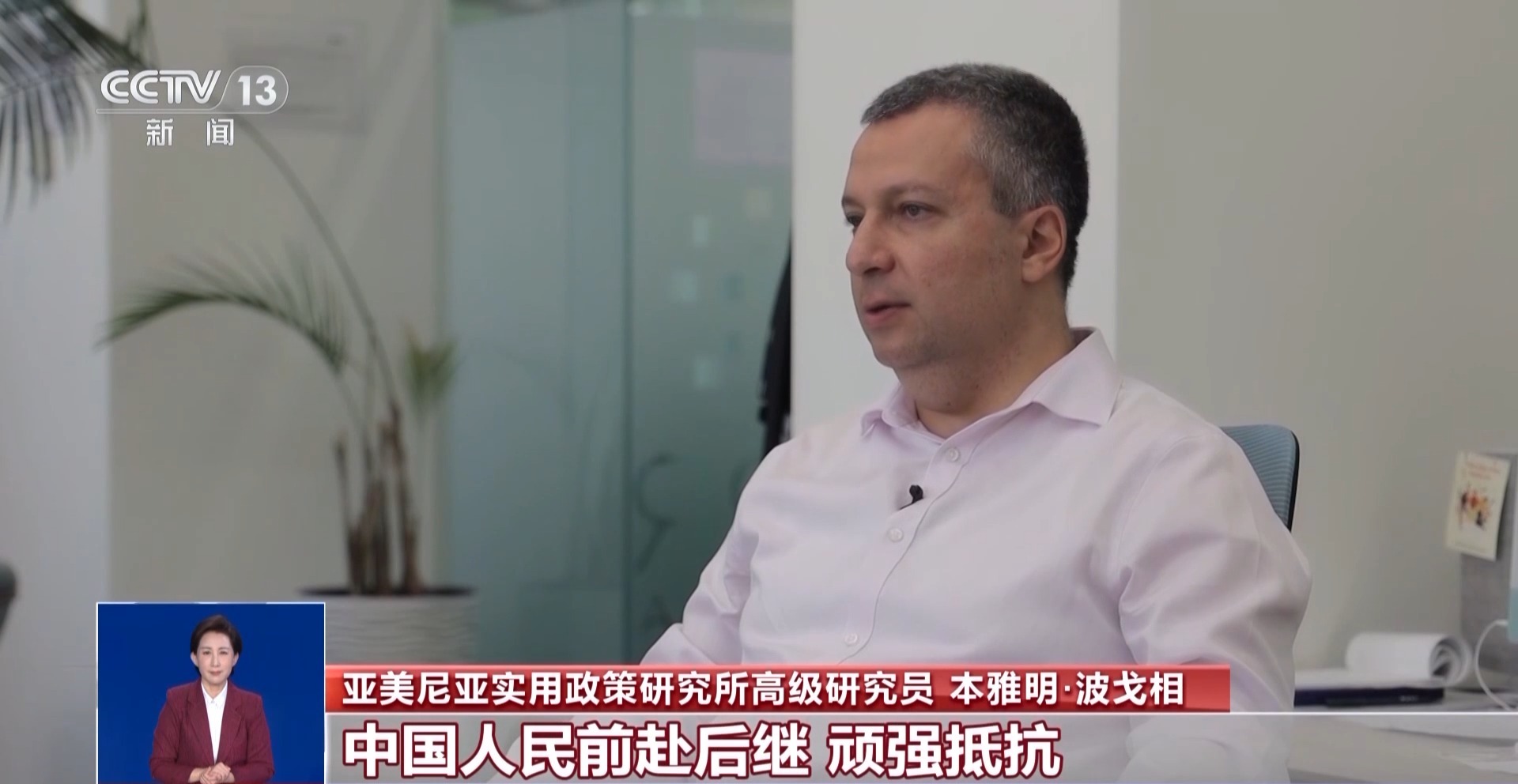 亞美尼亞實用政策研究所高級研究員 本雅明·波戈相:自20世紀(jì)30年代初起,中國就展開了艱苦卓絕的抗日戰(zhàn)爭。中國人民前赴后繼、頑強抵抗、付出巨大犧牲,為人類最終戰(zhàn)勝法西斯勢力作出不可磨滅的貢獻(xiàn)。我們應(yīng)當(dāng)永遠(yuǎn)銘記中國和反法西斯同盟國取得的偉大勝利,歷史不僅需要被銘記,更需要從中汲取教訓(xùn)。