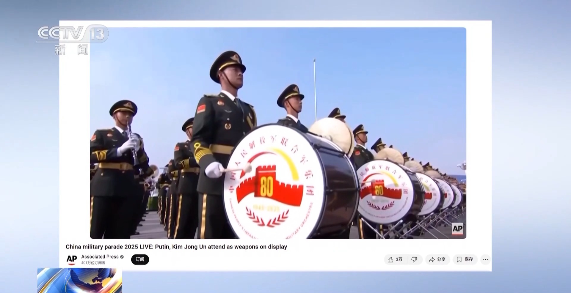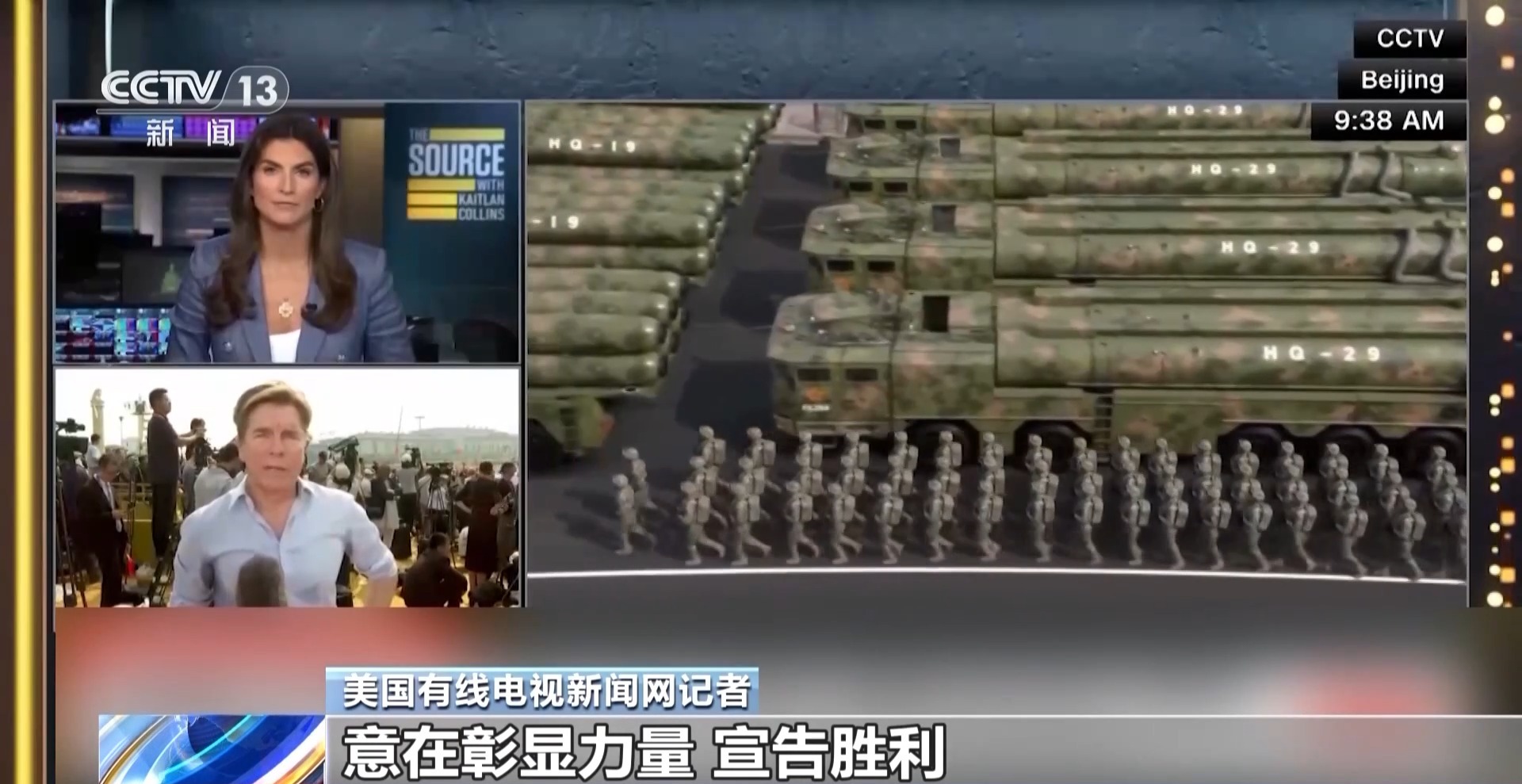 美國有線電視新聞網(wǎng)(CNN)通過現(xiàn)場記者和總臺的直播信號幾乎全程關(guān)注了抗戰(zhàn)勝利80周年紀(jì)念大會。美國廣播公司(ABC)、美國全國廣播公司(NBC)、美聯(lián)社等多家媒體和通訊社也對此進(jìn)行了轉(zhuǎn)播和報道。